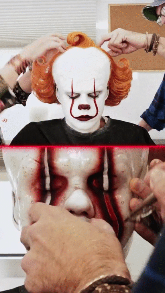 Chris Chalk (Dick Halloran) y Stephen Rider (Hank Grogan) recuerdan haber sido un poco más cautelosos al interactuar con el actor cuando lucía su look de Pennywise. «Bill es una persona muy agradable», dice Rider entre risas. «Pero cuando lo veías como Pennywise, ¡no querías meterte con él! Es tan espeluznante y además extremadamente alto, algo que yo no sabía. Pensé: ‘¿Qué tal, Michael Jordan? ¿Cómo estás? ¿Por qué no te sientas para que podamos hablar?'».