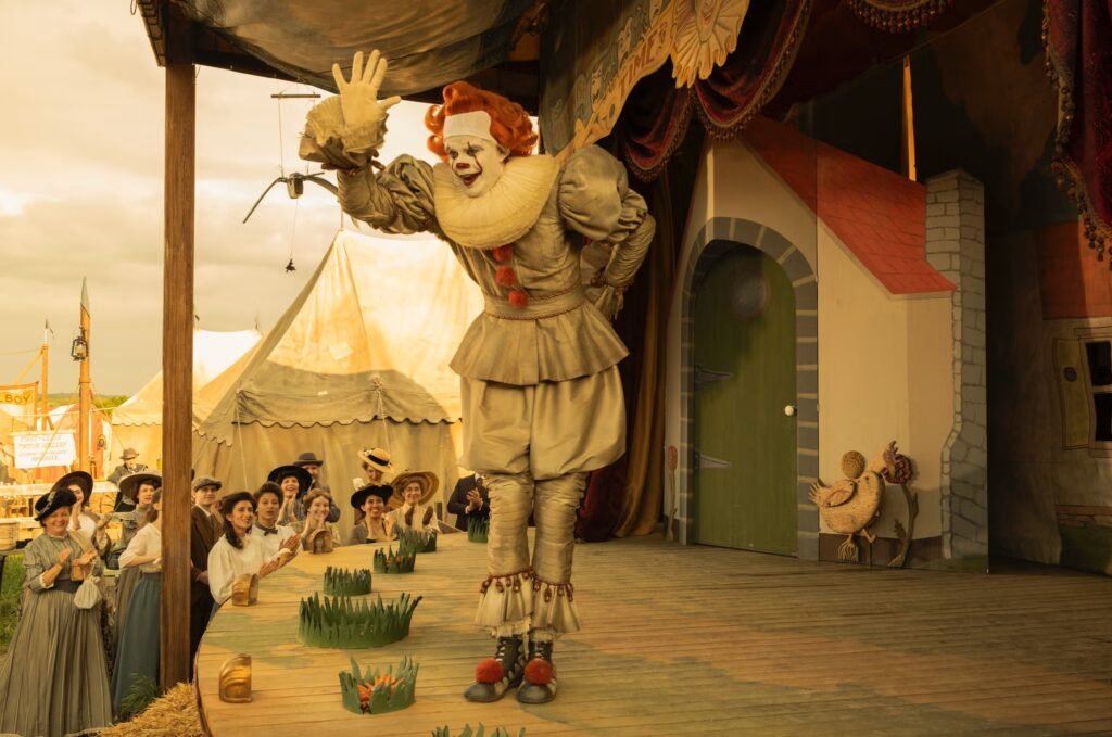 Al crear la escena de la Sra. Kersh en ‘It: Capítulo Dos’, Muschietti incluso añadió fotografías antiguas en tono sepia a las paredes del apartamento que rodeaban a la anciana (interpretada por la actriz Joan Gregson). Estas imágenes mostraban a Bill Skarsgård, el actor que interpreta a Pennywise, con una apariencia más humana, como un hombre digno de principios del siglo pasado, con entradas, una mano metida en el chaleco de su traje de tres piezas y una sonrisa inquietantemente familiar. Estaba de pie junto a una niña taciturna y una carreta de feria con la frase «El Gran Pennywise».