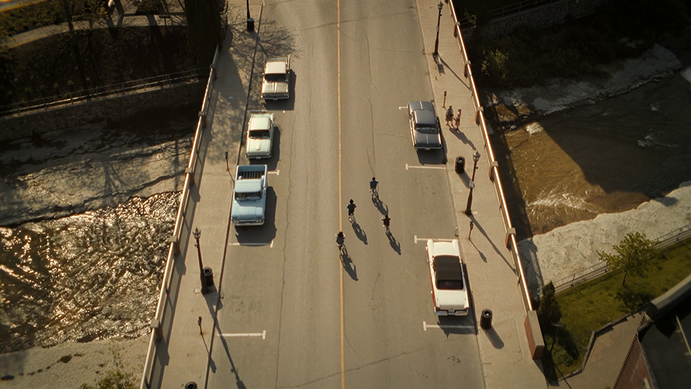 El episodio comienza con los chicos yendo en bicicleta por Derry, camino a enseñarle al jefe de policía Clint Bowers las fotografías que han sacado. En los planos generales del pueblo, podemos ver el famoso puente que aparece en ‘It: Capítulo 2’, concretamente en la escena en la que agreden (y desgraciadamente matan) a Adrian Mellon 🙁.